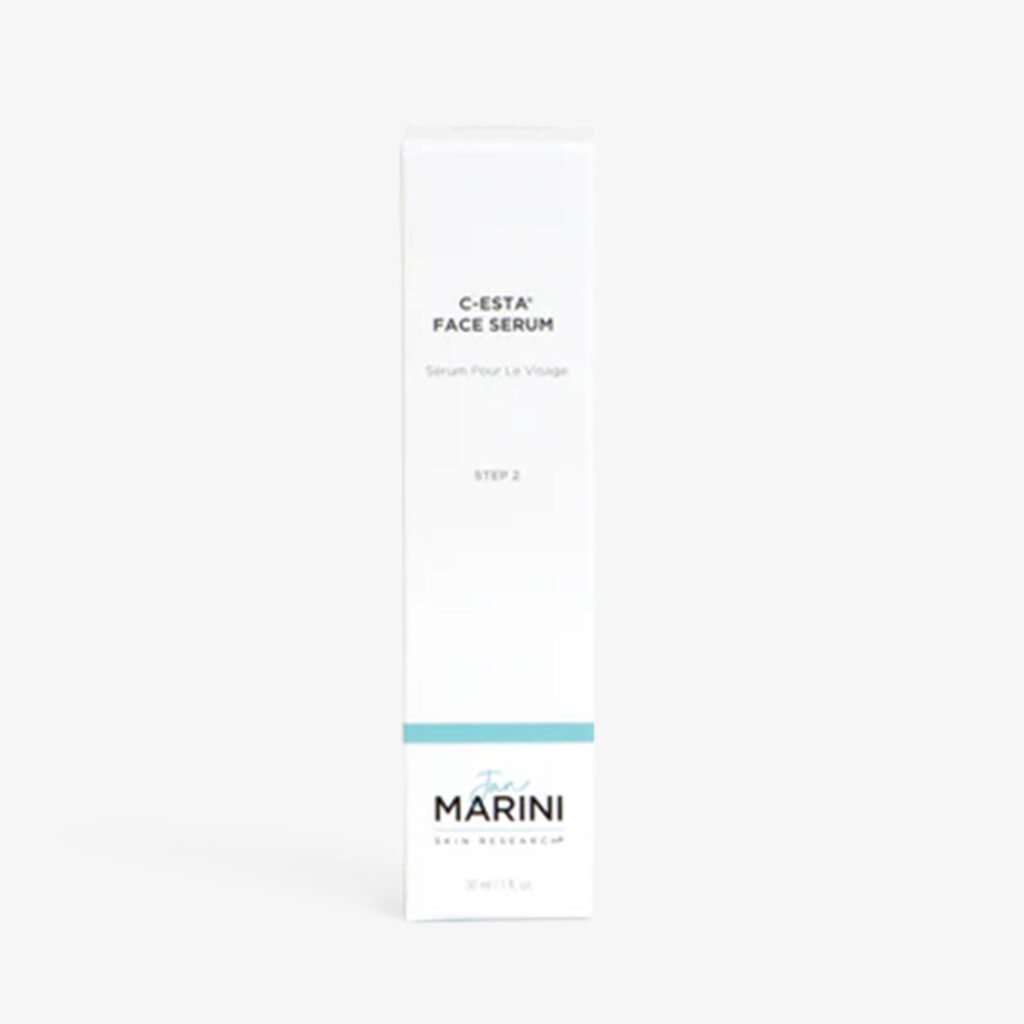 Jan Marini C-ESTA Face Serum is a powerful antioxidant cocktail, featuring a lipid-soluble form of vitamin C, DMAE, and hyaluronic acid to help reduce the appearance of fine lines and wrinkles and uneven skin texture while simultaneously protecting the skin from free radicals caused by UV exposure and environmental stressors.