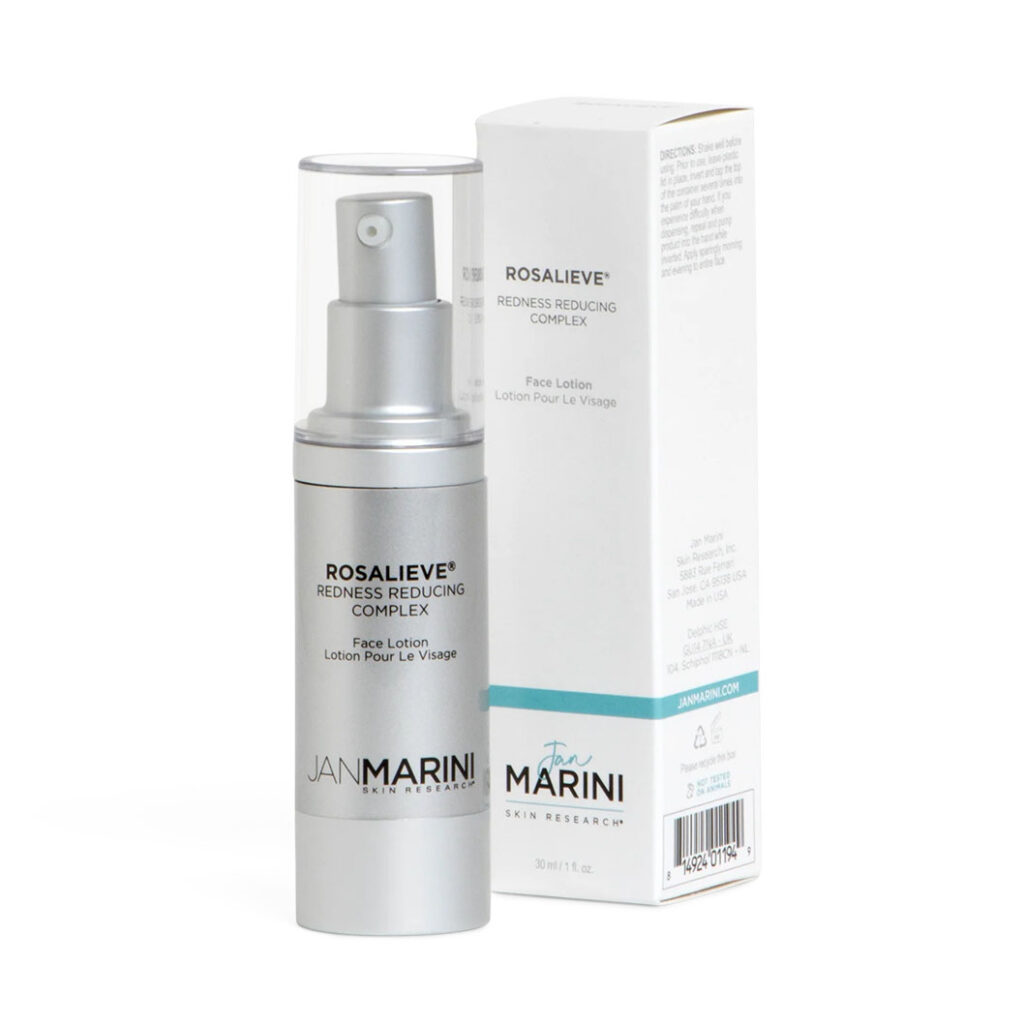 Jan Marini RosaLieve® Redness Reducing Complex is a calming treatment designed to soothe and moisturise skin that is prone to rosacea or other forms of irritation. This specialised formula contains azelaic acid to reduce inflammation and eliminate blemish-causing bacteria, powerful botanicals to repair damaged skin, and Tetrapeptide-14, a specialized protein that visibly reduces redness. The addition of antioxidant-rich shea butter and hyaluronic acid ensures that the skin stays soft, supple and hydrated, providing long-lasting moisture.